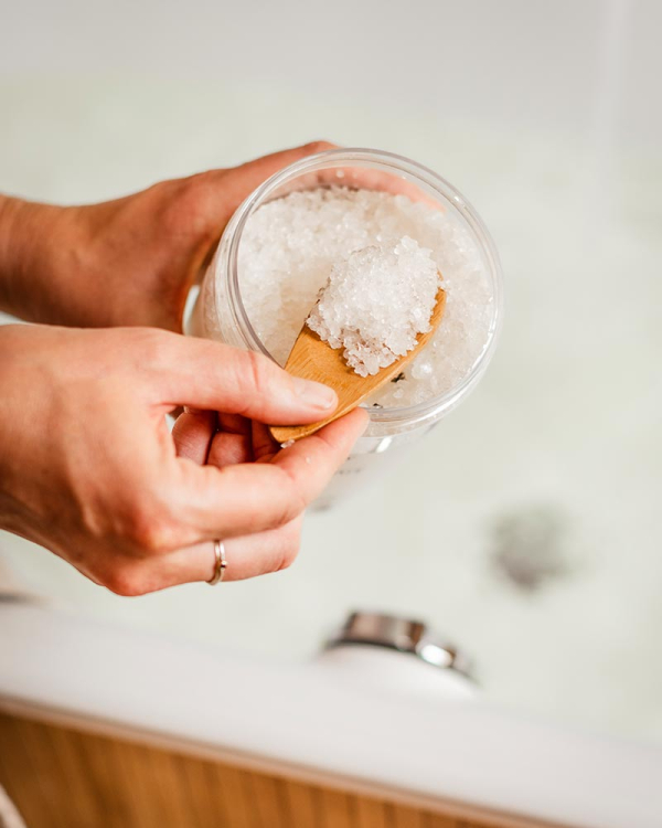 Neem gedurende 30 minuten een bad waaraan een mengsel van vijf eetlepels Dode Zee Zout, twee druppeltjes essentiële olie twee schepjes kruiden is toegevoegd. Spoel het lichaam na het bad goed af.
