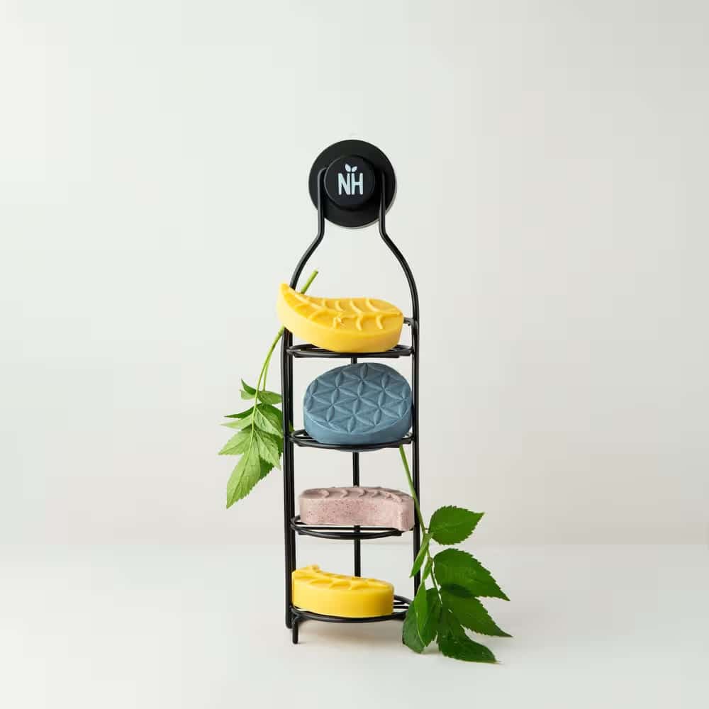 - Drie niveaus voor het opbergen van meerdere shampoobars, zeep of conditioner bars.