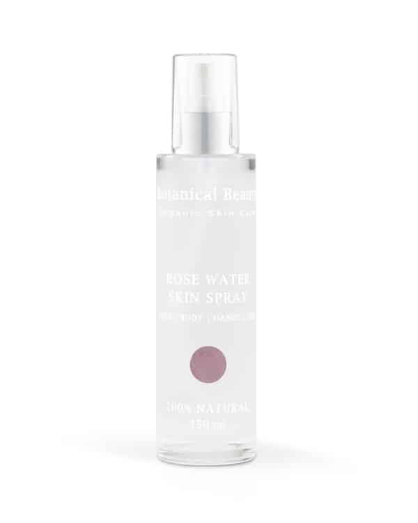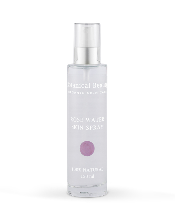 De biologische Rose Water Skin Spray heeft een samentrekkende, tonifiërende, celvernieuwende en verzachtende werking op de huid.